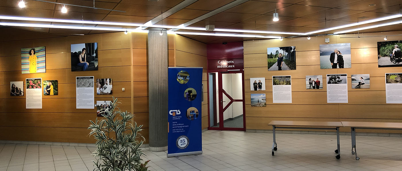 L’exposition, inaugurée lors de la Journée cantonale des Proches aidants, s’est déployée dans le hall d’accueil de l’Hôpital où visiteurs, soignants et patients se croisent tout au long de la journée.